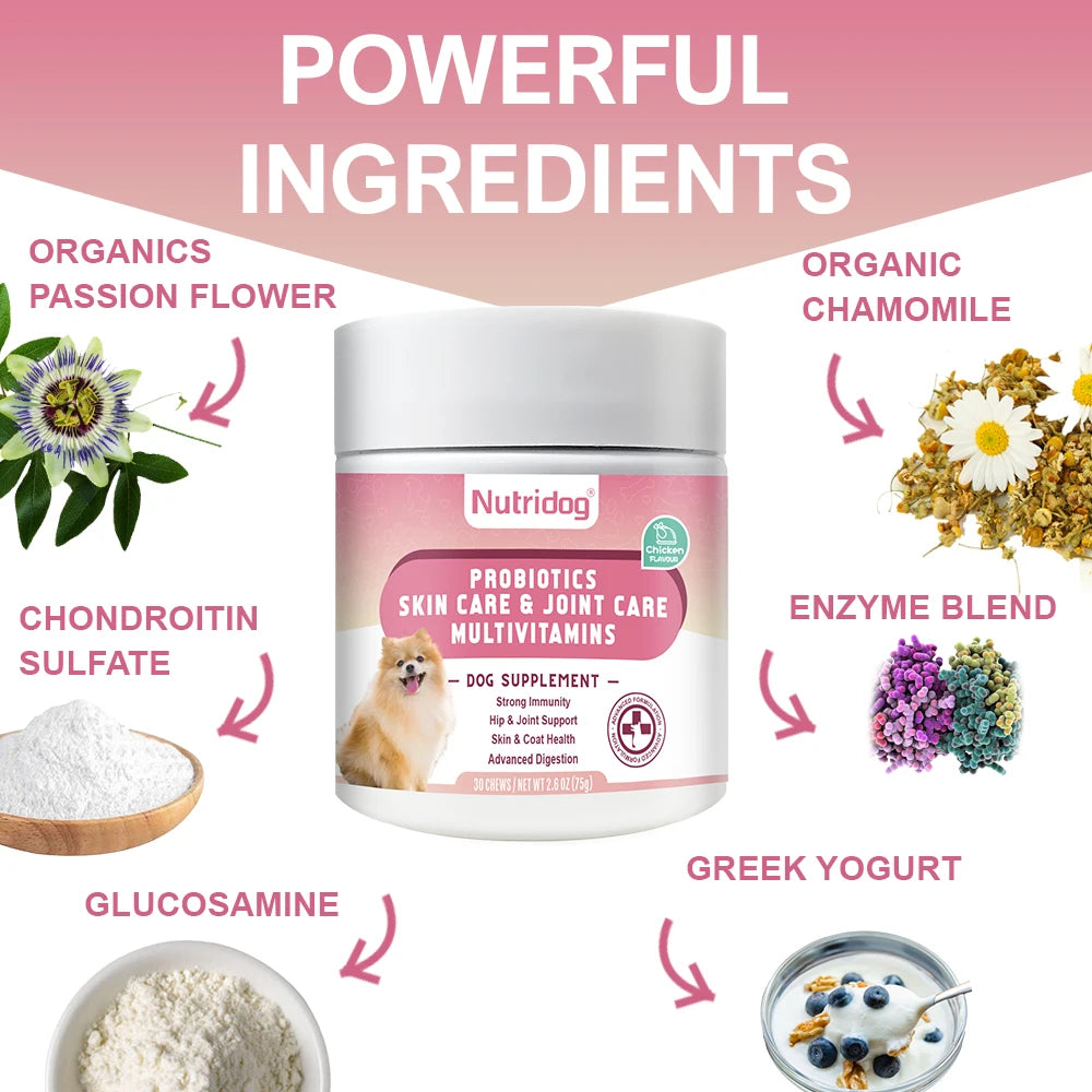 NUTRIDOG Dog Multivitamin Chews – 30 PCS | With Probiotics, Glucosamine & Digestive Enzymes for Joint, Gut & Immune Health